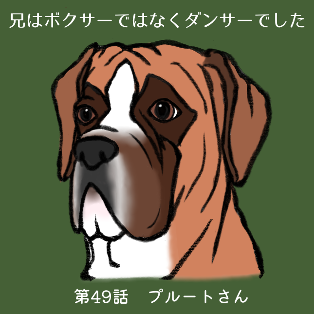 あの頃の想い出26 あの頃の想い出 2026.01.01 2026年、最初に登場するのは、 ボクサー(犬)のプルートさんです。 運動神経抜群のお兄ちゃん(人間のです)と一緒に よくジョギングしていたのですが、 ボクサーと暮らす人と言えば、 沖縄出身のあのボクシング選手がとても有名だったので、 通りすがりのおじさんに何度か 「お、兄ちゃんもボクサーかい?」と声をかけられました。 「…いえ、ダンサーです」と1回だけ答えましたが、 「へ、へえ」と相手の反応が微妙だったので、 二回めからは「いやいや違いますよー」 とだけ言うようになりました。 プルートさんが登場する49話はこちらとこちら